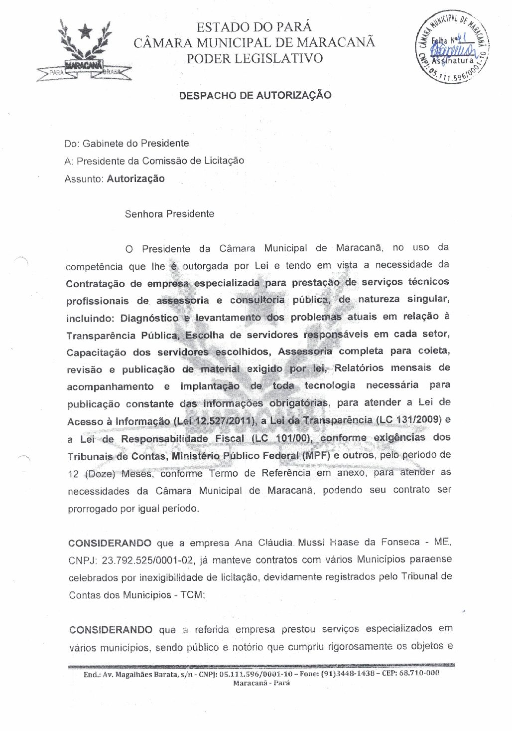 5 – Despacho de Autorização